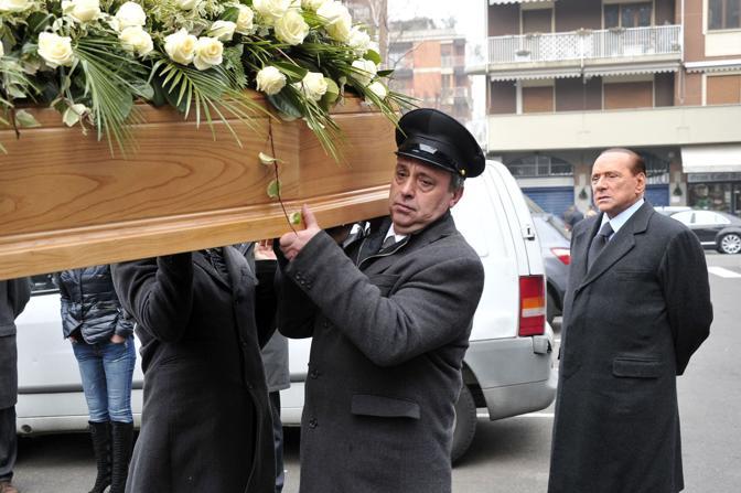 Poco prima di mezzogiorno, il Cavaliere, visibilmente commosso, ha lasciato la chiesa. Prima che la salma partisse per il cimitero di Lambrate, Berlusconi e i suoi familiari hanno ricevuto le condoglianze dalle numerosissime persone che hanno riempito la piccola chiesa. Accanto all’altare era esposto anche un grande gonfalone del Milan mentre fuori dalla chiesa e’ stata posta una grande corona da parte della Fininvest. I due figli maschi di Berlusconi, Piersilvio e Luigi, al termine della funzione, si sono stretti in un lungo abbraccio e moltissime persone si sono avvicinate a Silvio Berlusconi per stringergli la mano.