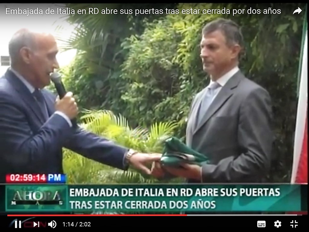 Nel quadro di un rilancio della proiezione istituzionale all’estero, il Governo ha deciso il 4 ottobre 2016 di re-istituire l’Ambasciata a Santo Domingo. Espletate le procedure diplomatiche e amministrative necessarie, lo scorso 1° febbraio l’Ambasciata ha ufficialmente riaperto e sono in corso le procedure per l’accreditamento del nuovo capo missione. L’amministrazione, anche al fine di contenere gli oneri connessi alla riapertura, ha previsto modalità organizzative che assicurino il migliore rapporto costi-benefici”.