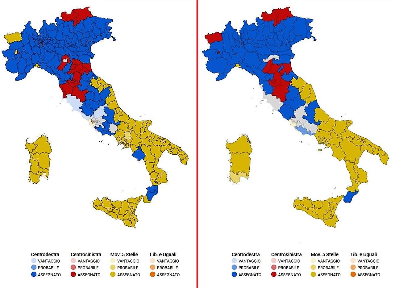 Vedendo i risultati delle elezioni riportati sulla carta geografica, l’Italia è apparsa divisa in due: il Nord colorato di azzurro per la prevalenza del Centrodestra, il Sud colorato con il giallo del Movimento 5 Stelle. Il rosso del Pd e dei neocomunisti invece è praticamente scomparso dalla scena, poiché gli elettori hanno potuto comprovare e giudicare il loro operato e lo hanno sonoramente bocciato.