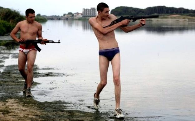 Persino la storia antica romana (di quando, cioè, eravamo gli artefici della civiltà nel mondo) è similmente oggetto di presa in giro ed i legionari, conquistatori del mondo, appaiono persone stupide e depravati irresponsabili dalla mentalità mafiosa.