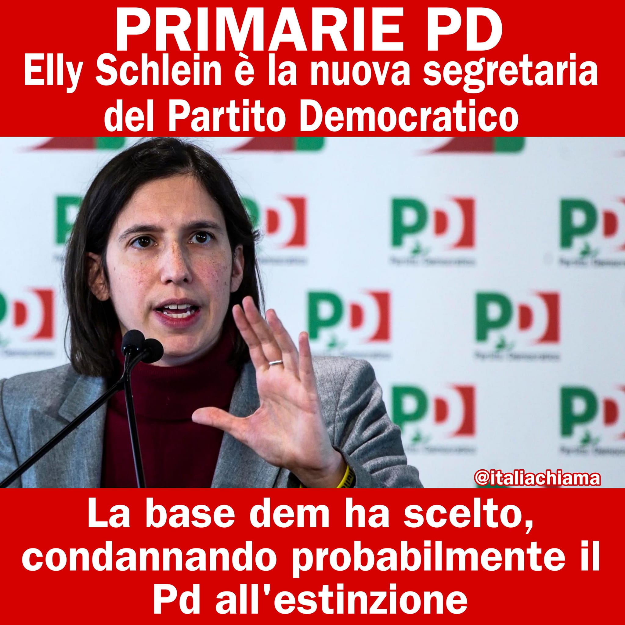La verità è che con lei segretaria il Pd si sposta ulteriormente a sinistra (perché non vuole lasciare quell’elettorato tutto al M5S), quella sinistra che pensa più agli immigrati clandestini che agli italiani all’estero; più a lesbiche e gay che a famiglie e imprese. Ma la base dem ha scelto, condannando probabilmente il Pd all’estinzione.