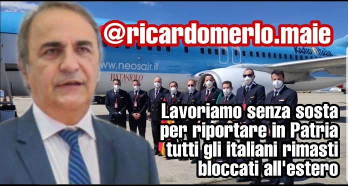 “Continua senza sosta il lavoro del governo italiano, con la Farnesina in prima linea, per riportare in Patria gli italiani rimasti bloccati all’estero in piena emergenza coronavirus”. Lo dichiara in una nota il Sen. Ricardo Merlo, Sottosegretario agli Esteri e presidente del MAIE – Movimento Associativo Italiani all’Estero.