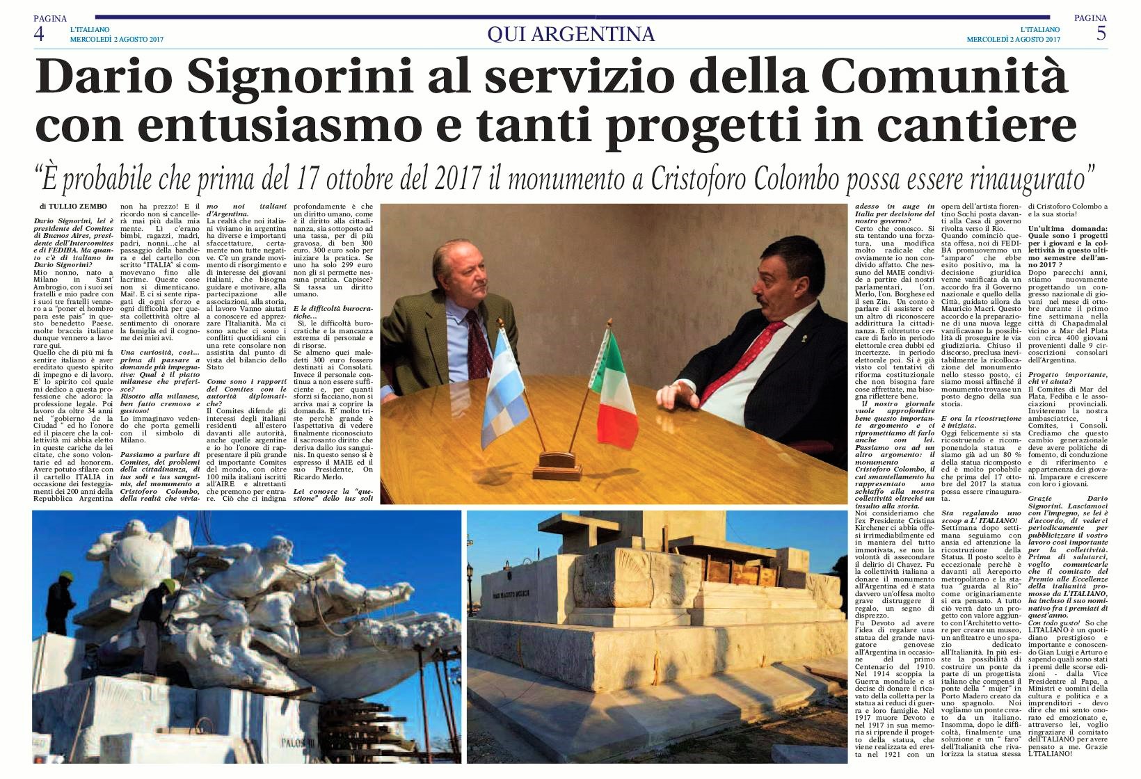 Dario Signorini, presidente del Comites di Buenos Aires, intervistato da Tullio Zembo per L’Italiano, parla, tra le altre cose, della realtà che vivono gli italiani residenti in Argentina: una realtà “che ha diverse e importanti sfaccettature, certamente non tutte negative. C’è un grande movimento di risorgimento e di interesse dei giovani italiani, che bisogna guidare e motivare, alla partecipazione alle associazioni, alla storia, al lavoro. Vanno aiutati a conoscere ed apprezzare l’Italianità. Ma ci sono anche i conflitti quotidiani con una rete consolare non assistita dal punto di vista del bilancio dello Stato”.