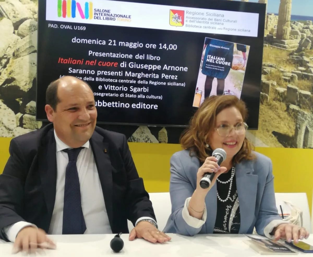 Si è svolta domenica 21 maggio, al salone del libro di Torino, nello stand della Regione Siciliana, la presentazione del libro Italiani nel cuore, edito da Rubbettino con la prefazione di Vittorio Sgarbi.