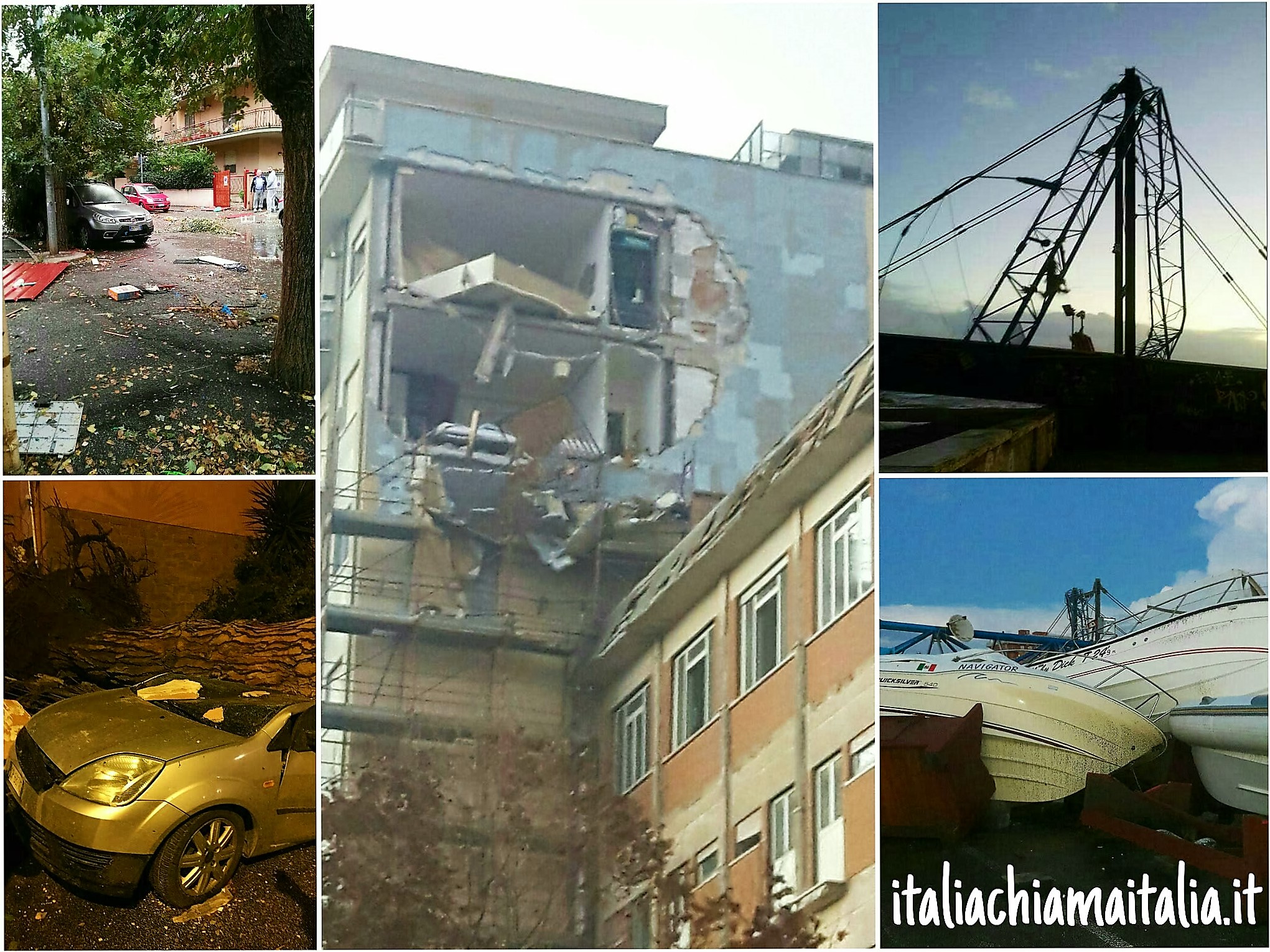 Sembra ci sia stata una guerra a Ladispoli. Emanuele Rossi sul sito web del Messaggero scrive: “Potente tromba d’aria si è abbattuta nel pomeriggio su Ladispoli, sulla costa a nord di Roma. La forza del vento ha causato il crollo dei due degli otto piani di un palazzo in via Ancona, in pieno centro. Ci sono feriti tra i quali almeno uno grave, colpito alla testa da un cornicione. Distrutti negozi e gazebo sul litorale e nel centro abitato. Crollati alberi e lampioni. La strada statale Aurelia è stata bloccata per evitare rischi agli automobilisti”.