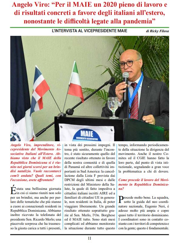 Angelo Viro, imprenditore, vicepresidente del Movimento Associativo Italiani all’Estero. Abbiamo visto che il MAIE della Repubblica Dominicana si è riunito nei giorni scorsi per un brindisi natalizio. Vuole raccontarci com’è andata? Quali temi, con l’occasione, avete affrontato?