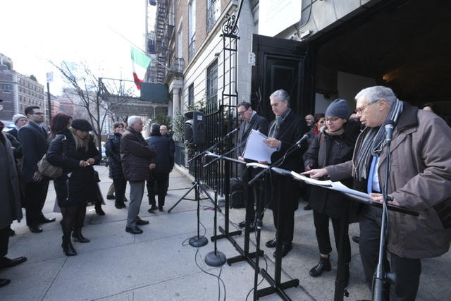 Anche quest’anno, 75° anniversario della liberazione di Auschwitz-Birkenau, diplomatici, rappresentanti delle istituzioni e della società civile si sono radunati davanti alla sede del Consolato di Park Avenue per la cerimonia della lettura dei nomi degli ebrei deportati dall’Italia e dai territori italiani.