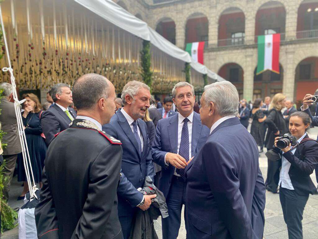 “Città del #Messico con il Presidente @lopezobrador_ al ricevimento conclusivo delle celebrazioni di #Mexico2021. Precedentemente visita alla mostra “La Grandeza de Mexico” con reperti recuperati da @Carabinieri Comando Tutela Patrimonio Culturale, grazie a cooperazione”. Lo scrive su Twitter il sottosegretario agli Esteri, Benedetto Della VEDOVA. Per “Triplice Anniversario” s’intende il settimo centenario della fondazione di Tenochtitlian, l’attuale Città del Messico (1321), il quinto centenario della sua conquista da parte degli spagnoli (1521) e il bicentenario dell’indipendenza messicana (1821).