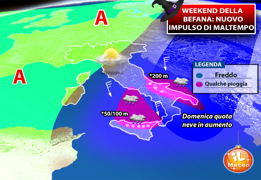 Gli esperti meteo assicurano sole e bel tempo, temperature in risalita, per il fine settimana della Befana. Anche se già tra qualche giorno tornerà l’aria gelida. Tra la fine di domenica e la giornata di lunedì, infatti, un nuovo nucleo di aria fredda fara’ irruzione sull’Italia. Le regioni adriatiche e quelle del sud saranno di nuovo le più coinvolte.