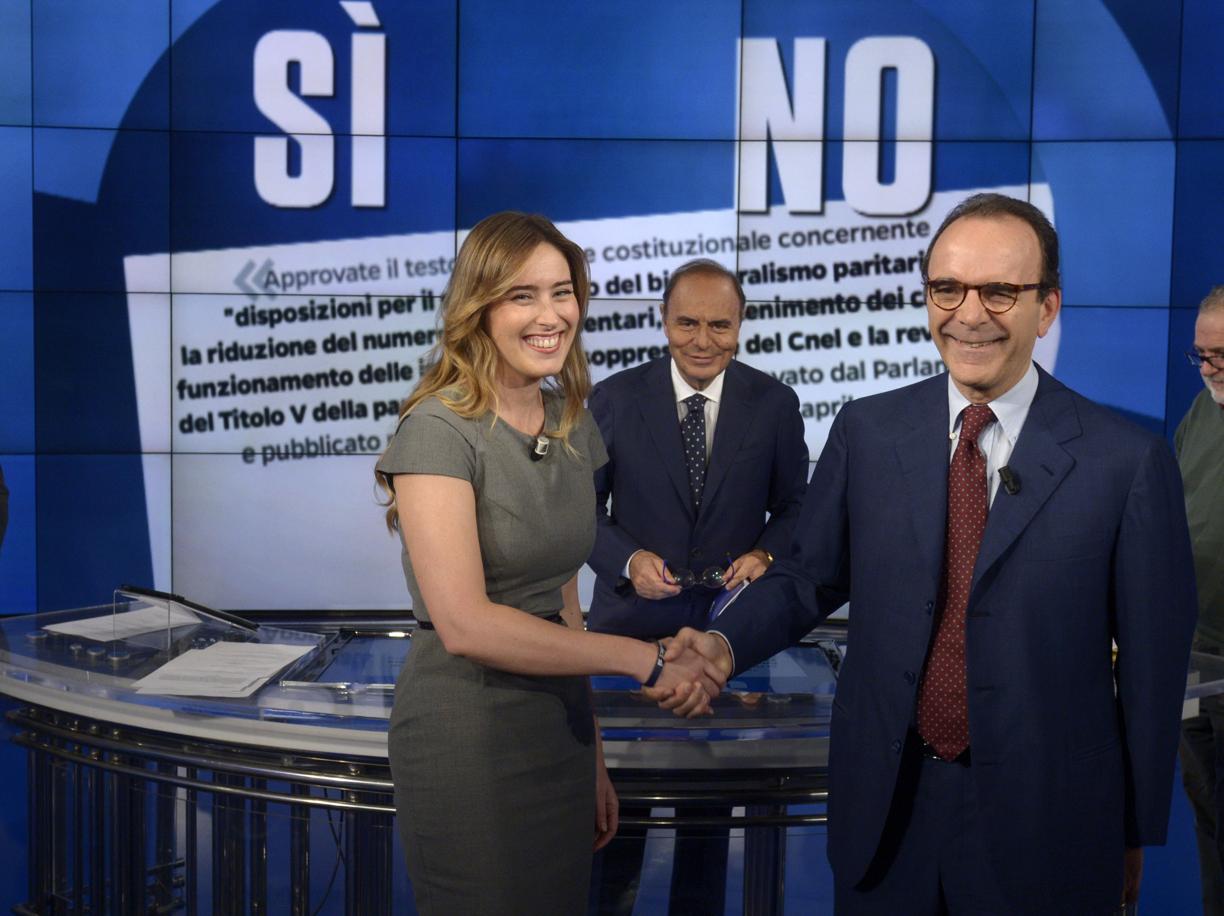 A proposito del duello a Porta a Porta con il ministro delle Riforme Maria Elena Boschi: “Boschi è preparatissima, ha studiato un sacco. Non so quanto sia finito il faccia a faccia. Era come un Real Madrid-Roma giocato al Bernabeu, un pareggio che va bene. Ci sono le partite in casa e quelle fuori casa, ma non ho capito quando ci sarà il ritorno in casa. Non mi voglio lamentare, ma i tempi per le risposte e le interruzioni” non sono stati uguali per entrambi.