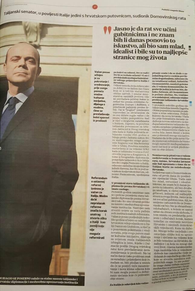 Aldo Di Biagio, senatore di Area Popolare eletto nella ripartizione estera Europa, intervistato dal giornale croato Vecernji list, parla di referendum costituzionale.