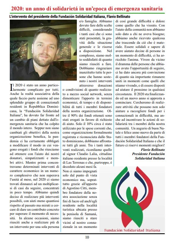 Il 2020 é stato un anno particolarmente complicato per tutti. Anche la realtá associativa della quale faccio parte assieme ad uno splendido gruppo di connazionali residenti in Repubblica Dominicana, la “Fundación Solidaridad Italiana”, ha dovuto far fronte ad un cambio di piani dettato dall’emergenza sanitaria che ha colpito il mondo intero.