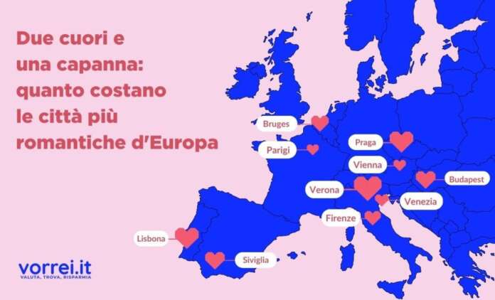 Nel cuore dell’Europa, tra i luoghi più romantici, è italiana la città ideale dove comprare casa secondo una ricerca di mercato effettuata da Vorrei.it in occasione della festa degli innamorati. Una ricerca di mercato, realizzata in occasione di San Valentino, ha scoperto dove è più conveniente affittare e acquistare casa per una giovane coppia di innamorati, mettendo a confronto le più romantiche città europee.