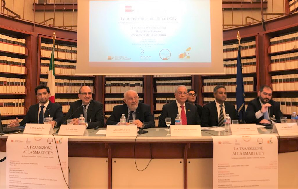 L’importanza del Convegno è stata sancita dalla presenza qualificata del Rettore dell’Università della Calabria, prof. Gino Crisci, e dell’Ambasciatore Antonio Vargas Hernandez, Direttore Generale della Cooperazione multilaterale a Santo Domingo, oltre che dall’alta qualità tecnica degli interventi sul tema specifico della “smart city”, alla presenza dei deputati Cinque Stelle Misiti e Milicchio e dell’assessore Flavia Marzano in rappresentanza del sindaco di Roma, Virginia Raggi, in un ambiente istituzionale altrettanto qualificante quale quello della Biblioteca della Camera dei Deputati, in via del Seminario.
