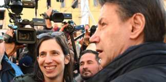 Tra il leader del Movimento 5 Stelle Giuseppe Conte e la segretaria del Partito Democratico Elena Ethel (detta Elly) Schlein ...