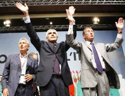 I rispettivi leader, Pier Ferdinando Casini, Gianfranco Fini, Francesco Rutelli e Raffaele Lombardo sono in platea.