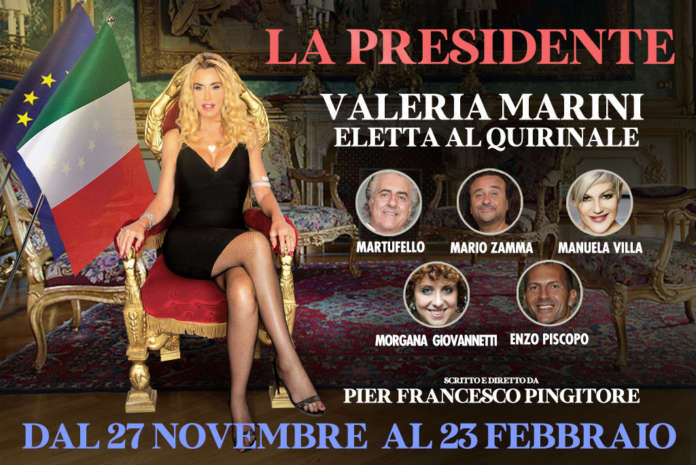 Dal 27 novembre al 23 febbraio al Salone Margherita di Roma va in scena “La Presidente” il nuovo spettacolo scritto e diretto da Pier Francesco Pingitore che vede come protagonista Valeria Marini nei panni della nuova Presidente della Repubblica, eletta dopo Sergio Mattarella e che vedrà nei panni di Segretario Generale del Quirinale il comico Martufello, intervenuto su Radio Cusano Campus.