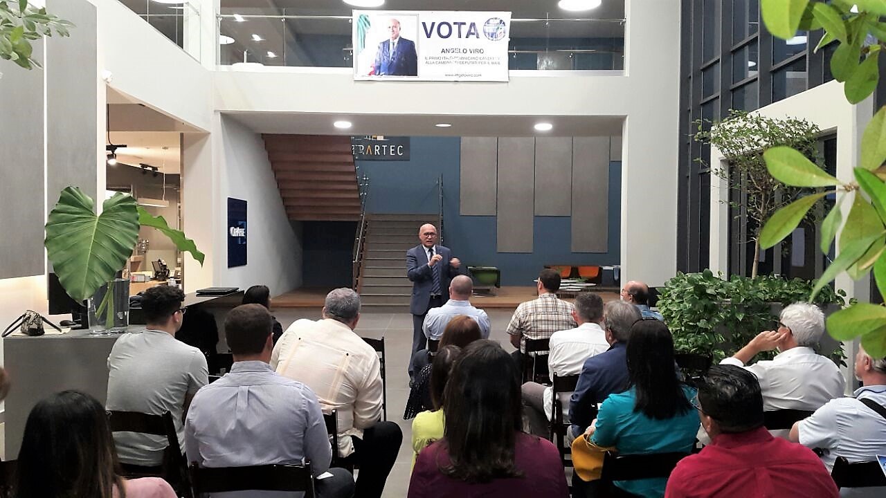 “Noi candidati all’estero dobbiamo sostenere gli interessi di coloro che ci votano. In questo momento il MAIE è il partito con la maggiore sensibilità da questo punto di vista. Nella Repubblica Dominicana ci sono però io, Angelo Viro, una persona che voi tutti conoscete. Quindi non c’è tanto di cui parlare. Più che altro c’è da dialogare e conversare”.